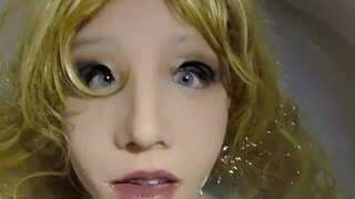 Flexi Sexy Blonde She-male Sucks Her Fuckpole And Stretches Her Ass With a Huge Dildo In a Yoga Pose