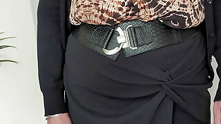 Going to work in a blouse, skirt ,stockings and heels. Ready for my younger boss to inspect my mature tits, ass and smooth-shaven gash.