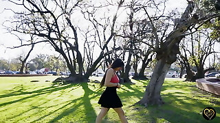 Accidental pornstar Rachel Wriggler goes commando, shows under her short, glorious, summer dress