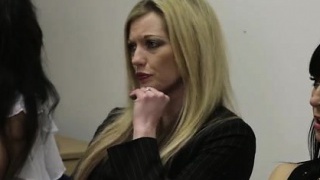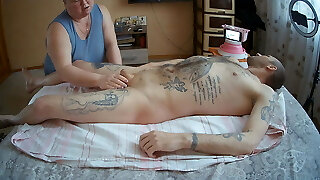 Beautiful Blonde Stepmom In Shorts Plays With Her Stepsons Big Hard Cock While Watching Scary Vid