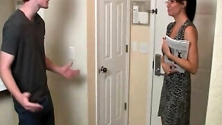 Stellar brunette enjoys pussy rubbing and smooching with a guy before taking his dick inside her pussy and getting fucked hard in many positions