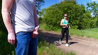 Man Flashes Cock In Public And Cumshot Near Beautiful Blonde Damsel She Look How His Jerkoff Hard Rod And Spunk On Her Body