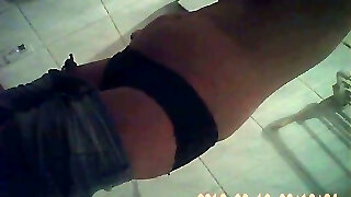 I surprise a female who catches me jacking off in a public bathroom on the beach and helps me conclude cumming