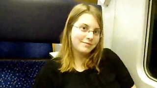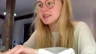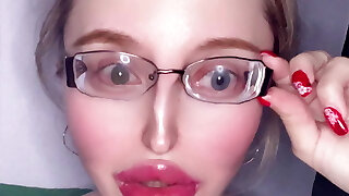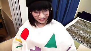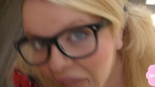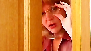 Nerdy brunette in glasses Michele James is testing big ebony trouser snake sticking out of the wall