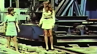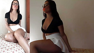 Lovely skinny Blonde fucked by a fuck-machine while her horny lesbian bestie black-haired was watching