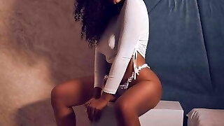 Horny ebony tramp with an outstanding oiled bouncy butt gets the ultimate pleasure being penetrated by a sex machine