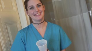 Sexy Busty Redhead Nurse Angel Wicky Knows the Best Way To Collect Sperm Samples With Her Gash & Ass