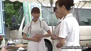 Three sexy nurses come into my hospital apartment, pull out my cock and give me a dt and a handjob