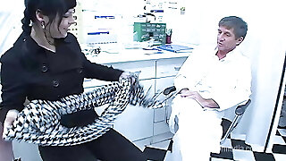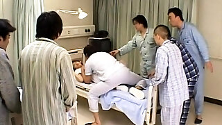 Beautiful dark haired mega-bitch with a perfect pair of tits gets her holes filled with cock by two male nurses