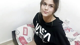 Colombian girl with small tits and a nice chubby rump loving herself while having her anus opened by a buttplug and two