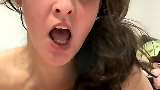 Junge Dark-haired mit Peruecke hat Ihr erstes mal sperma im Mund und traut sich nicht zu schlucken