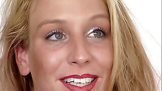 blond schoenheit schiebt sich riesen dildo in die muschi
