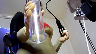 latina teenage lesbian with three milk cans rides vibrator until she squirts