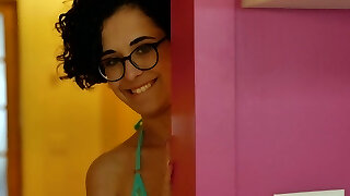 Petite Brunette Tight Pussy Private Lesson ends up Cum in Mouth by Small Schlong Teacher & going to the bathroom to take a