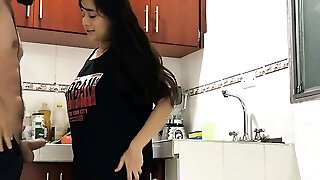 cheating wife sucking bbc got face fucked and standing up fuck before bouncing her ginormous donk over that bbc on the floor