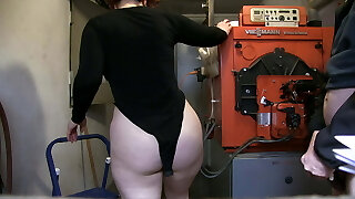 I surprise the gym cleaner who catches me tugging off in the douche and helps me end up giving me a great job