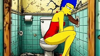 The Simpsons Porn Parody: Sexy Cheating Wife Marge Lets a Black Stud Smash Her In The Public Wc