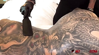 My stepsister is a freaky goth with lots of tattoes everywhere. She loves fuckin' with me, eating my trouser snake and shrieking, as she rides it for hours