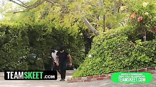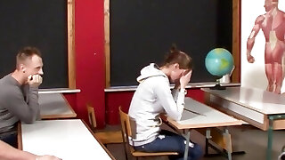 Whorish Step-Mummy Catches Her Bratty Redheaded Step-Daughter Blowing A Guy Off And Joins On The Action